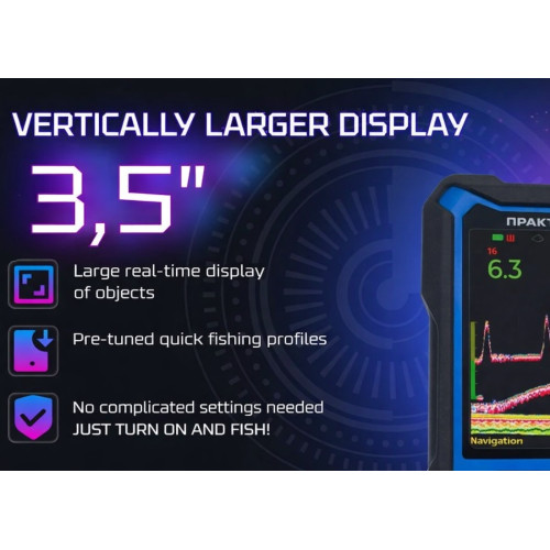 Lielāks ekrāns ļauj skaidri redzēt objektus un to kustību reāllaikā, bez aiztures, kas ir īpaši svarīgi aktīvas makšķerēšanas laikā. Displejs saglabā labu salasāmību arī zemās temperatūrās un darbojas stabili līdz –20 °C, bez aizsalšanas, palēninājuma vai spilgtuma zuduma.