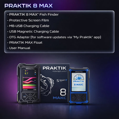 Praktik 8 MAX ir uzlabota Praktik 8 versija ar palielinātu displeju un paplašinātām iespējām. Eholote ir paredzēta detalizētai ūdens slāņa izpētei, perspektīvu makšķerēšanas vietu noteikšanai, zivju novērošanai un precīzai ēsmas kontrolei reāllaikā.